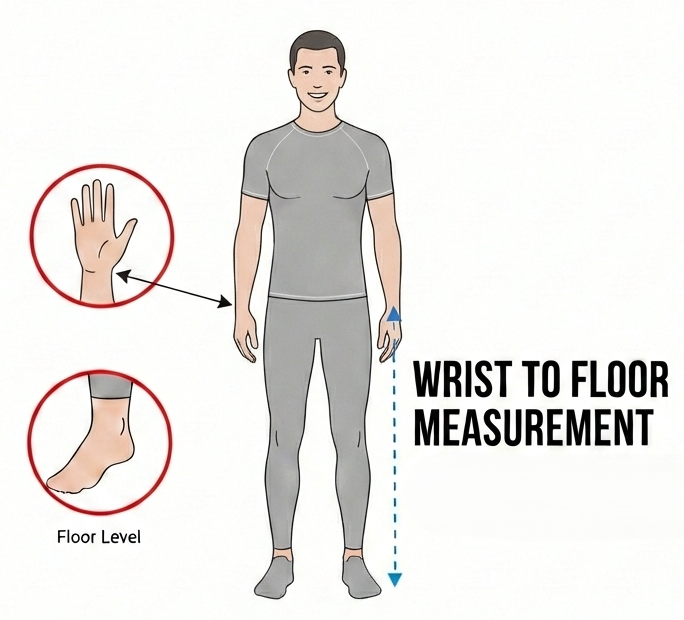 Grab a tape measure and note your wrist-to-floor and overall height. It takes two minutes.